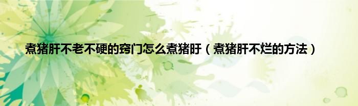 大家好,小常来为大家解答以上问题。煮猪肝不老不硬的窍门怎么煮猪旴,煮猪肝不烂的方法很多人还不知道,现在让我们一起来看看吧!