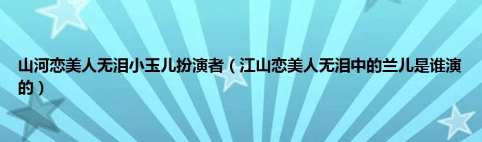 大家好,小常来为大家解答以上问题。山河恋美人无泪小玉儿扮演者,江山恋美人无泪中的兰儿是谁演的很多人还不知道,现在让我们一起来看看吧!