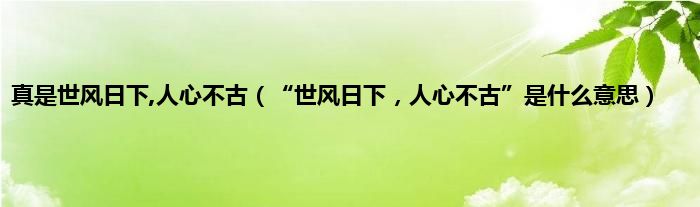 大家好,小常来为大家解答以上问题。真是世风日下,人心不古,“世风日下,人心不古”是什么意思很多人还不知道,现在让我们一起来看看吧!