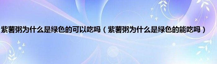 大家好,小科来为大家解答以上问题。紫薯粥为什么是绿色的可以吃吗,紫薯粥为什么是绿色的能吃吗很多人还不知道,现在让我们一起来看看吧!