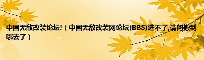 大家好,小常来为大家解答以上问题。中国无敌改装论坛!,中国无敌改装网论坛(BBS)进不了,请问搬到哪去了很多人还不知道,现在让我们一起来看看吧!