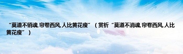 大家好,小常来为大家解答以上问题。“莫道不销魂,帘卷西风,人比黄花瘦”,赏析“莫道不消魂,帘卷西风,人比黄花瘦”很多人还不知道,现在让我们一起来看看吧!