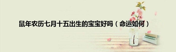 本文鼠年农历七月十五出生的宝宝好吗,命运如何到此分享完毕,希望对大家有所帮助。