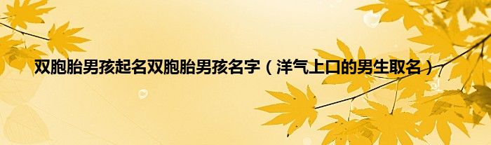 大家好,综合小编来为大家讲解下。双胞胎男孩起名双胞胎男孩名字,洋气上口的男生取名这个很多人还不知道,现在让我们一起来看看吧!