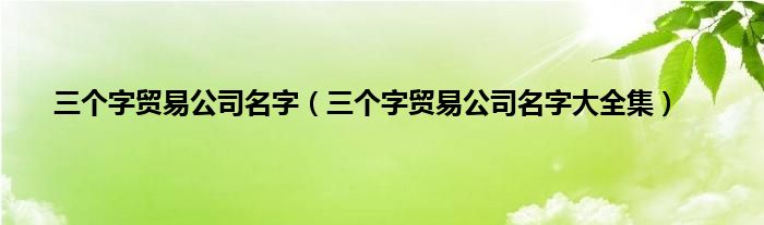 大家好,综合小编来为大家讲解下。三个字贸易公司名字,三个字贸易公司名字大全集这个很多人还不知道,现在让我们一起来看看吧!