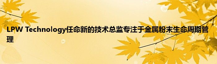 英国朗科恩的LPW技术有限公司宣布任命Andrew Florentine为该公司的技术总监。Florentine将领导团队开发LPW的PowderLife,这是一种独特的金属粉末生命周期管理系统。
