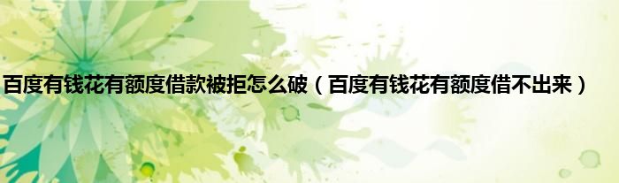 大家好,小常来为大家解答以上问题。百度有钱花有额度借款被拒怎么破,百度有钱花有额度借不出来很多人还不知道,现在让我们一起来看看吧!
