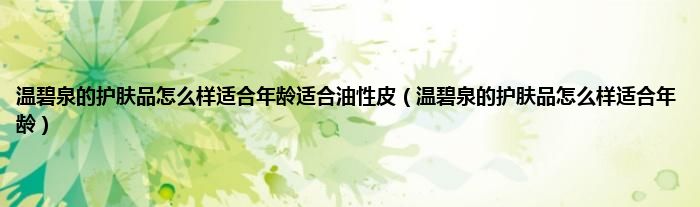 大家好,小科来为大家解答以上问题。温碧泉的护肤品怎么样适合年龄适合油性皮,温碧泉的护肤品怎么样适合年龄很多人还不知道,现在让我们一起来看看吧!