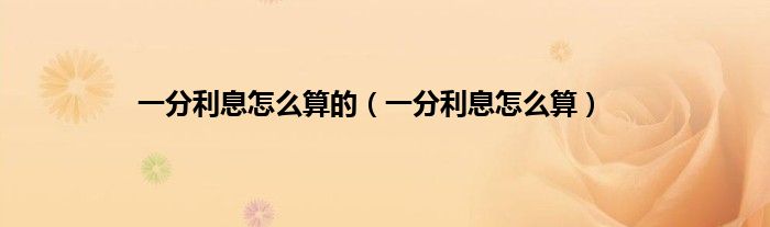 大家好,小常来为大家解答以上问题。一分利息怎么算的,一分利息怎么算很多人还不知道,现在让我们一起来看看吧!