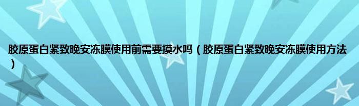 大家好,小科来为大家解答以上问题。胶原蛋白紧致晚安冻膜使用前需要摸水吗,胶原蛋白紧致晚安冻膜使用方法很多人还不知道,现在让我们一起来看看吧!