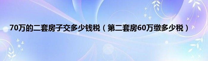 大家好,小常来为大家解答以上问题。70万的二套房子交多少钱税,第二套房60万缴多少税很多人还不知道,现在让我们一起来看看吧!