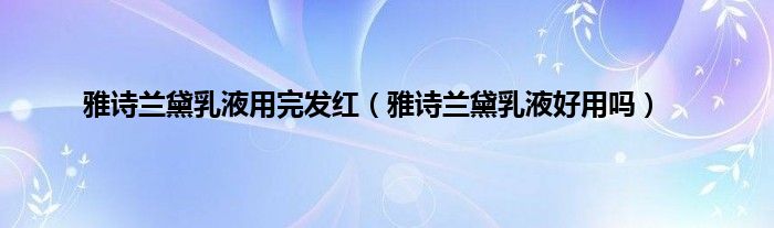 大家好,小科来为大家解答以上问题。雅诗兰黛乳液用完发红,雅诗兰黛乳液好用吗很多人还不知道,现在让我们一起来看看吧!