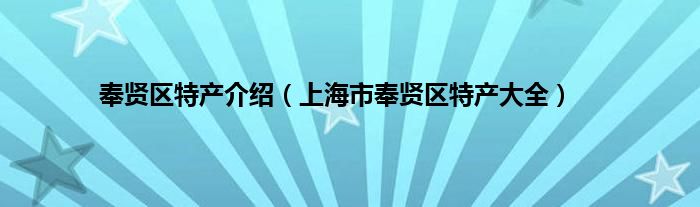 大家好,小常来为大家解答以上问题。奉贤区特产介绍,上海市奉贤区特产大全很多人还不知道,现在让我们一起来看看吧!