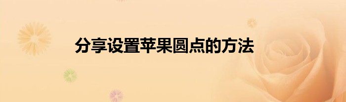 现在大家使用手机的频率越来越频繁,手机也为我们提供了许多的便利,今天小编也来说一下这个分享设置苹果圆点的方法相关的文章,这个操作其实不复杂,接下来就给大家介绍一下分享设置苹果圆点的方法,一起来看看吧: