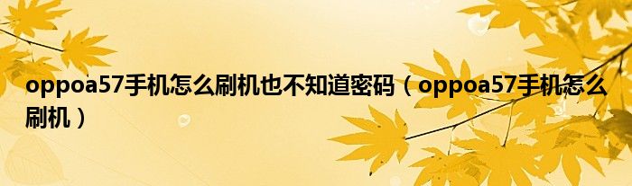 oppoa57手机怎么刷机也不知道密码(oppoa57手机怎么刷机)