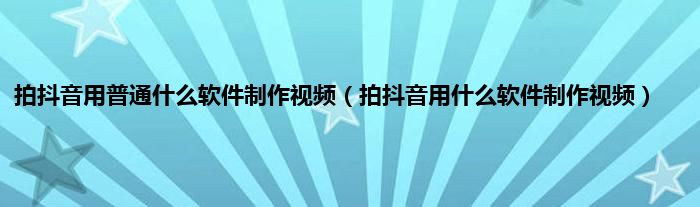 拍抖音用普通什么软件制作视频(拍抖音用什么软件制作视频)