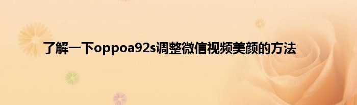 现在大家使用手机的频率越来越频繁,手机也为我们提供了许多的便利,今天小编也来说一下这个了解一下oppoa92s调整微信视频美颜的方法相关的文章,这个操作其实不复杂,接下来就给大家介绍一下了解一下oppoa92s调整微信视频美颜的方法,一起来看看吧: