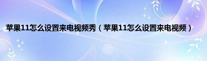 大家好,小常来为大家解答以上问题。苹果11怎么设置来电视频秀,苹果11怎么设置来电视频很多人还不知道,现在让我们一起来看看吧!