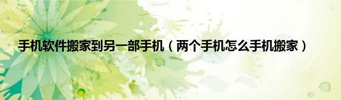 手机软件搬家到另一部手机(两个手机怎么手机搬家)