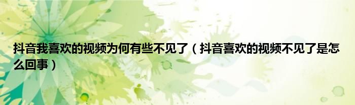 大家好,小常来为大家解答以上问题。抖音我喜欢的视频为何有些不见了,抖音喜欢的视频不见了是怎么回事很多人还不知道,现在让我们一起来看看吧!