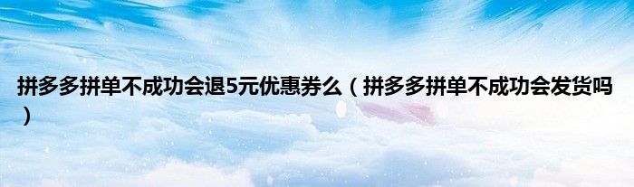大家好,小常来为大家解答以上问题。拼多多拼单不成功会退5元优惠券么,拼多多拼单不成功会发货吗很多人还不知道,现在让我们一起来看看吧!