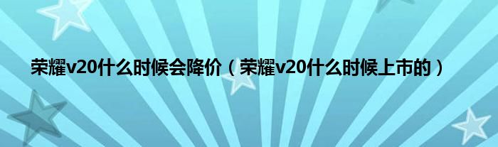荣耀v20什么时候会降价(荣耀v20什么时候上市的)