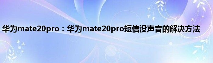 相信通过华为mate20pro:华为mate20pro短信没声音的解决方法这篇文章能帮到你,在和好朋友分享的时候,也欢迎感兴趣小伙伴们一起来探讨。