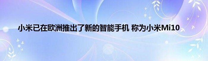 小米已在欧洲推出了新的智能手机,称为小米Mi10。该品牌的新手机的售价约为66,999卢比。它将在该国零售3种颜色,包括钛银黑,冰海蓝,桃金。手机将由玻璃,铝合金制成。据说厚度为8.96毫米,重量为208克。