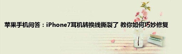 现在大家使用手机的频率越来越频繁,手机也为我们提供了许多的便利,今天小编也来说一下这个苹果手机问答:iPhone7耳机转换线撕裂了,教你如何巧妙修复相关的文章,这个操作其实不复杂,接下来就给大家介绍一下苹果手机问答:iPhone7耳机转换线撕裂了,教你如何巧妙修复,一起来看看吧: