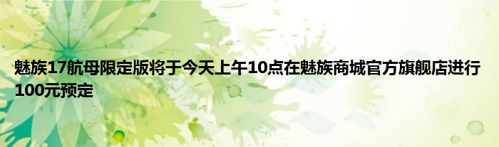 5月27日消息,魅族科技官微宣布,魅族17航母限定版将于今天上午10点在魅族商城和魅族天猫、京东、苏宁易购官方旗舰店进行100元预定!售价4299元,限量2020台。