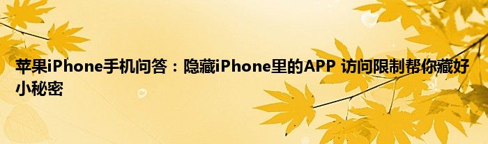 相信通过苹果iPhone手机问答:隐藏iPhone里的APP,访问限制帮你藏好小秘密这篇文章能帮到你,在和好朋友分享的时候,也欢迎感兴趣小伙伴们一起来探讨。