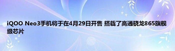 现在大家使用手机的频率越来越频繁,手机也为我们提供了许多的便利,今天小编也来说一下这个iQOO Neo3手机将于在4月29日开售 搭载了高通骁龙865旗舰级芯片相关的文章,这个操作其实不复杂,接下来就给大家介绍一下iQOO Neo3手机将于在4月29日开售 搭载了高通骁龙865旗舰级芯片,一起来看看吧: