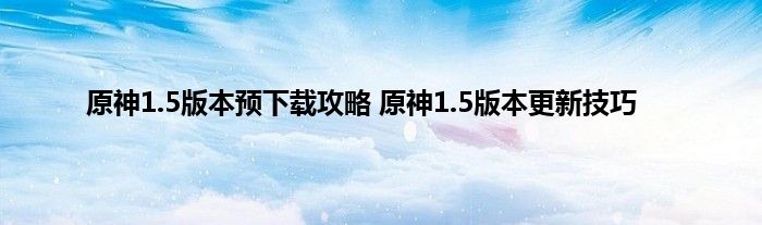 原神1.5版本预下载攻略原神1.5版本更新技巧