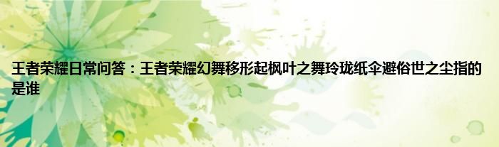 以上就是王者荣耀日常问答:王者荣耀幻舞移形起枫叶之舞玲珑纸伞避俗世之尘指的是谁的推荐,相信通过王者荣耀日常问答:王者荣耀幻舞移形起枫叶之舞玲珑纸伞避俗世之尘指的是谁这篇文章能帮到你,也欢迎对游戏很感兴趣小伙伴们一起来探讨。