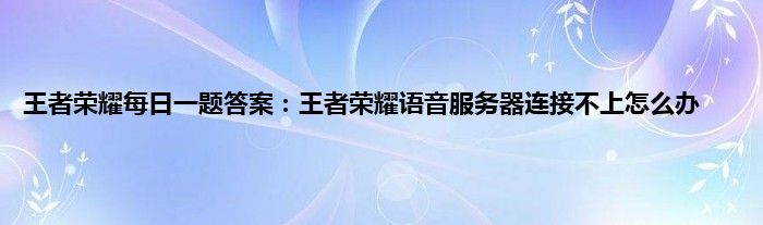 王者荣耀每日一题答案:王者荣耀语音服务器连接不上怎么办