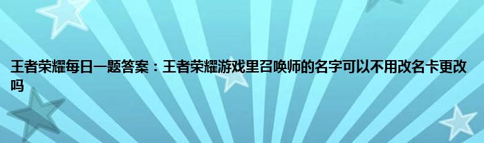 以上就是王者荣耀每日一题答案:王者荣耀游戏里召唤师的名字可以不用改名卡更改吗的推荐,相信通过王者荣耀每日一题答案:王者荣耀游戏里召唤师的名字可以不用改名卡更改吗这篇文章能帮到你,也欢迎对游戏很感兴趣小伙伴们一起来探讨。