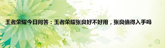 今天来聊聊关于王者荣耀今日问答:王者荣耀张良好不好用,张良值得入手吗的文章,游戏是很多人的选择,但是游戏玩多了也会身心疲惫,现在就为大家来简单介绍下王者荣耀今日问答:王者荣耀张良好不好用,张良值得入手吗,希望对各位小伙伴们有所帮助。