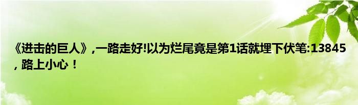 感谢你在百忙之中抽出时间阅读《进击的巨人》,一路走好!以为烂尾竟是第1话就埋下伏笔:13845,路上小心!这篇文章。你觉得今天《进击的巨人》,一路走好!以为烂尾竟是第1话就埋下伏笔:13845,路上小心!话题怎么样?关于《进击的巨人》,一路走好!以为烂尾竟是第1话就埋下伏笔:13845,路上小心!这篇文章的任何评论都可以告诉我。你的每一个建议都是对小编辑的肯定和鼓励。小编明天会继续给你带来更多的好内容。我希望你不要错过。感谢支持哟!