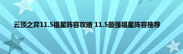 最近很多小伙伴都在问,云顶之弈的福星阵容怎么搭配,云顶之弈11.5福星阵容如何选择?下面为大家介绍云顶之弈最强福星搭配阵容。