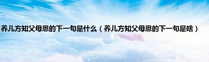 大家好,小科来为大家解答以上问题。养儿方知父母恩的下一句是什么,养儿方知父母恩的下一句是啥很多人还不知道,现在让我们一起来看看吧!