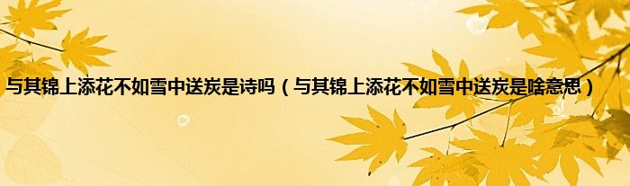 大家好,小科来为大家解答以上问题。与其锦上添花不如雪中送炭是诗吗,与其锦上添花不如雪中送炭是啥意思很多人还不知道,现在让我们一起来看看吧!