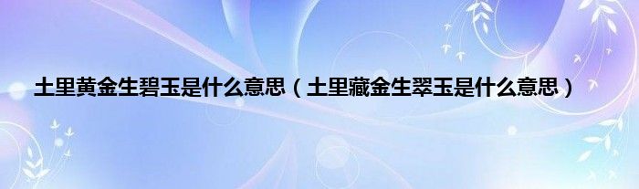 1、 土里藏金生翠玉是什么意思:“答案是:地球是很普通的东西,而黄金和玉石是很珍贵的东西”。
