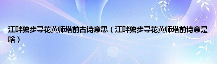 大家好,小科来为大家解答以上问题。江畔独步寻花黄师塔前古诗意思,江畔独步寻花黄师塔前诗意是啥很多人还不知道,现在让我们一起来看看吧!