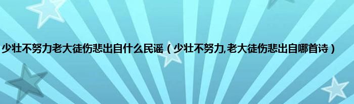 大家好,小科来为大家解答以上问题。少壮不努力老大徒伤悲出自什么民谣,少壮不努力,老大徒伤悲出自哪首诗很多人还不知道,现在让我们一起来看看吧!