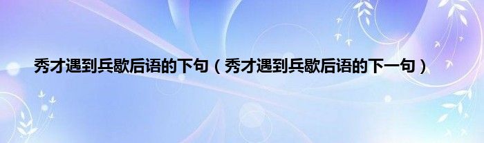 大家好,小科来为大家解答以上问题。秀才遇到兵歇后语的下句,秀才遇到兵歇后语的下一句很多人还不知道,现在让我们一起来看看吧!