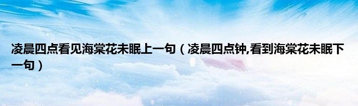 1、 "凌晨四点钟看《海棠花不眠》是错的。正确的应该是“凌晨四点钟,我看海棠不眠之花”。下一句是:“我总觉得这一刻你应该在我身边。”