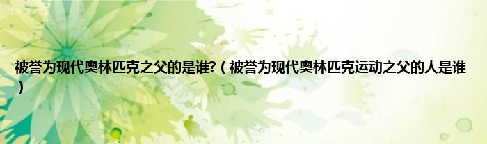 大家好,小科来为大家解答以上问题。被誉为现代奥林匹克之父的是谁?,被誉为现代奥林匹克运动之父的人是谁很多人还不知道,现在让我们一起来看看吧!
