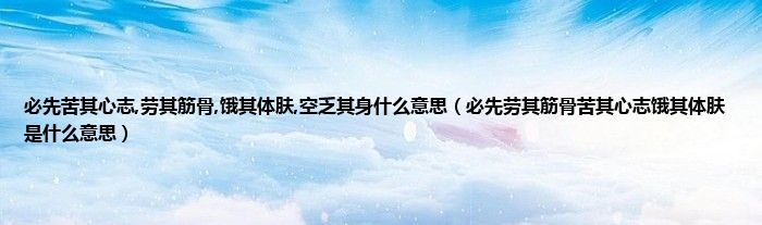 大家好,小科来为大家解答以上问题。必先苦其心志,劳其筋骨,饿其体肤,空乏其身什么意思,必先劳其筋骨苦其心志饿其体肤是什么意思很多人还不知道,现在让我们一起来看看吧!