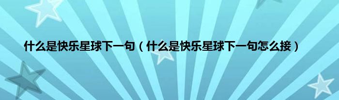 大家好,小科来为大家解答以上问题。什么是快乐星球下一句,什么是快乐星球下一句怎么接很多人还不知道,现在让我们一起来看看吧!