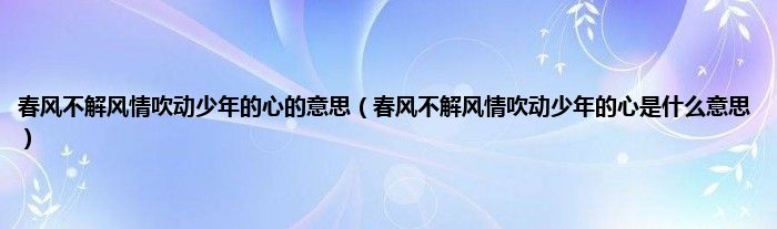 1、 春风不解风情吹动少年的心是什么意思的回答是:当我年轻的时候,我年少无知,我对女孩有真实的感情。